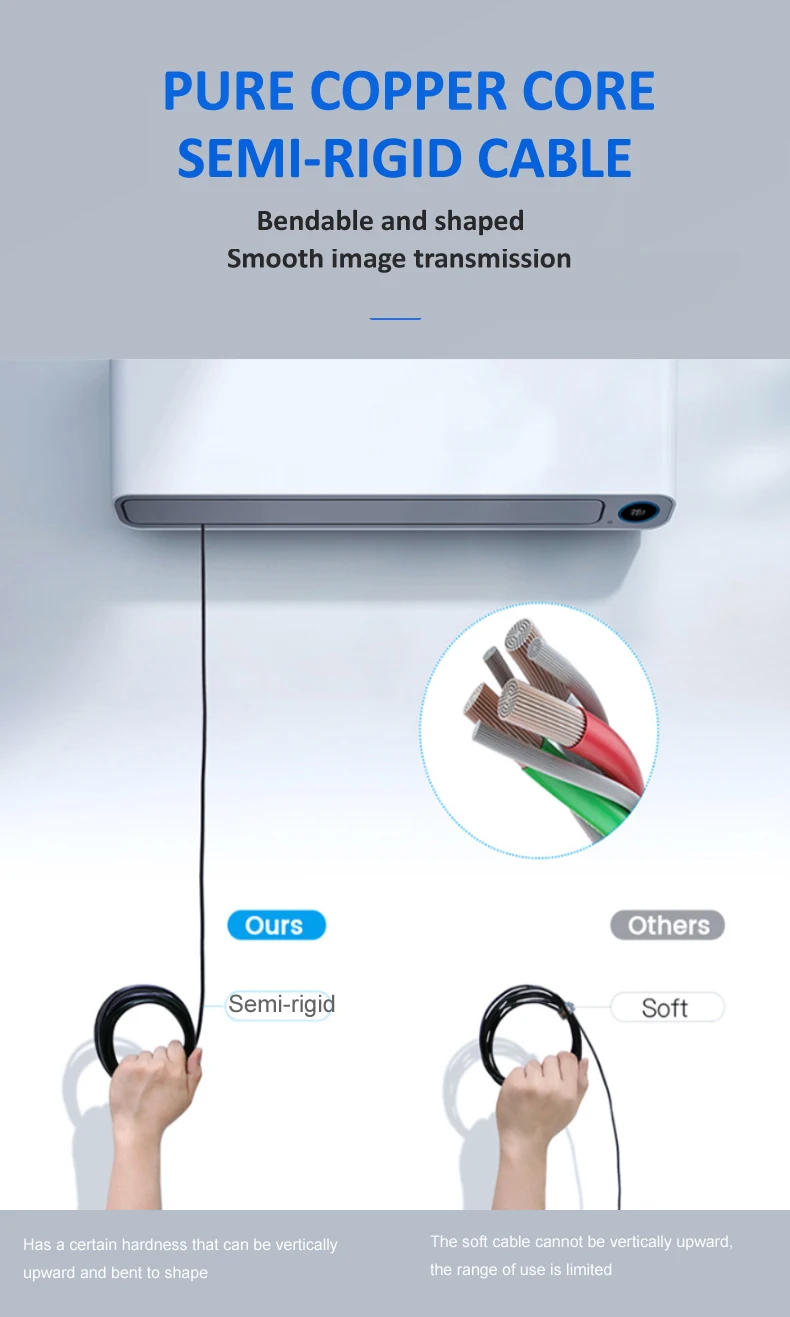 1. [ Waterproof Camera & Semi-Rigid Cable]:Withsemi-rigid cable is long enough and easy to hold the shape, go into the hard to reach area. IP67 Waterproof camera, our endoscope can work with humid environment, you can even submerge it under water.